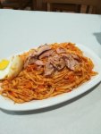 21 Euro für Bett und vier-Gänge-Pilgermenu, perfecto – ich war dabei. Allerdings gab es erst um 20:00 Essen – typisch spanisch. Also warten, um halb neun setzte ich mich einfach in den Speiseraum und siehe da, Mamma brachte mir meine Auswahl für den ersten Gang, Pasta: