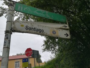 Doch dann der ersehnte erste Wegweiser entlang des Camino, der ein wenig Hoffnung aufkeimen ließ, immerhin einen Erfolg verzeichnen zu können.