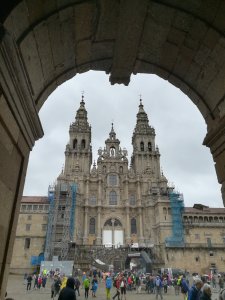 Zuerst natürlich am Denkmal „Monte Gozo“ vorbei und über die Brücke ganz gemächlich nach Santiago und in die Altstadt laufen. Es dauert, man genießt, am Ziel, wirklich?