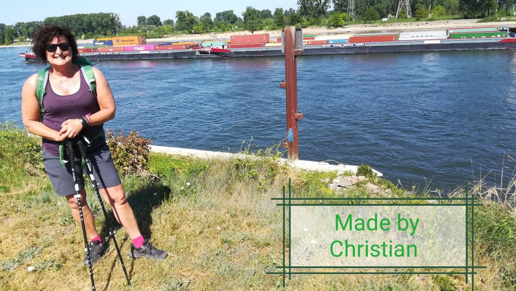 Die „Helene“ brachte mich ans andere Ufer des Rheins. Dieser Weg schien mir schöner, voll Natur. Ein guter Gedanke, wie sich herausstellte. Noch ein Kaffee to Go, den Rucksack wie üblich mit allem notwendigen Pilger Utensilien, Pflaster, Sonnencreme, Wasser, power Riegel, Regenschutz… obwohl ich diesen heute bestimmt nicht brauchte. Alles war perfekt.