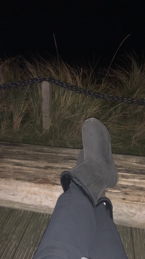 Ich bin für kleine Überraschungen gut, das zeichnet meinen Entdeckergeist und meine Abenteuerlust eben aus. So geschah es, dass ich von unserer Klinik aus in Richtung Wenningstedt loslief. Es war dunkel und ich lief gegen den Wind. Den Kopf zum Schutz der Kälte gesenkt und auf den Boden achtend. Hin und wieder einen Blick nach links, das Meer und die auflaufenden Wellen waren beeindruckend in der Finsternis.