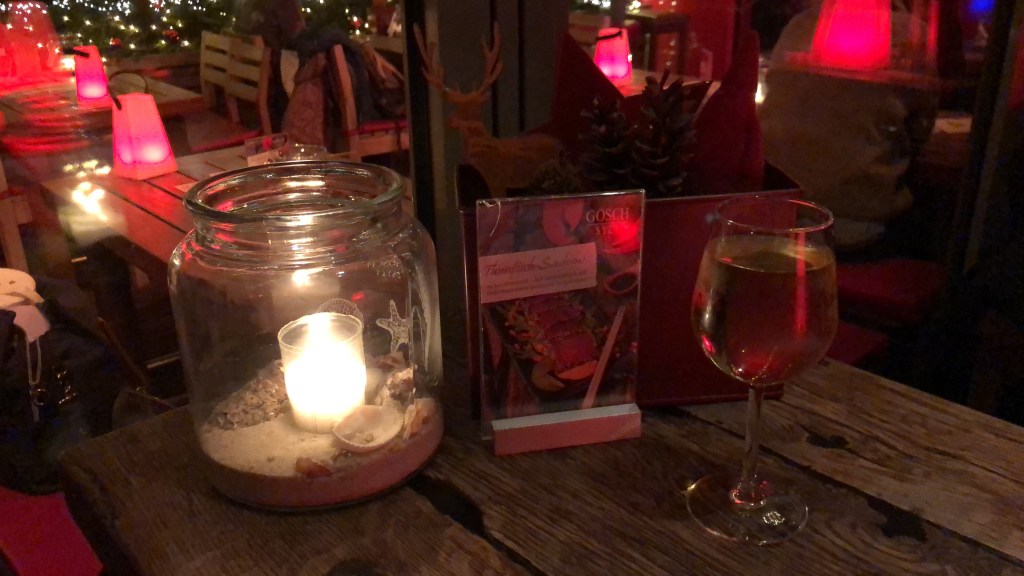 Beim Gorsch angekommen fand ich neben einer sehr schön dekorierten Bar und Restaurant auch draußen einen freien Strandkorb der Badenixen vom Beitragsfoto ( die ja offensichtlich zum Surfen unterwegs waren …) und lauschte dem Meer in der abendlichen Stimmung.