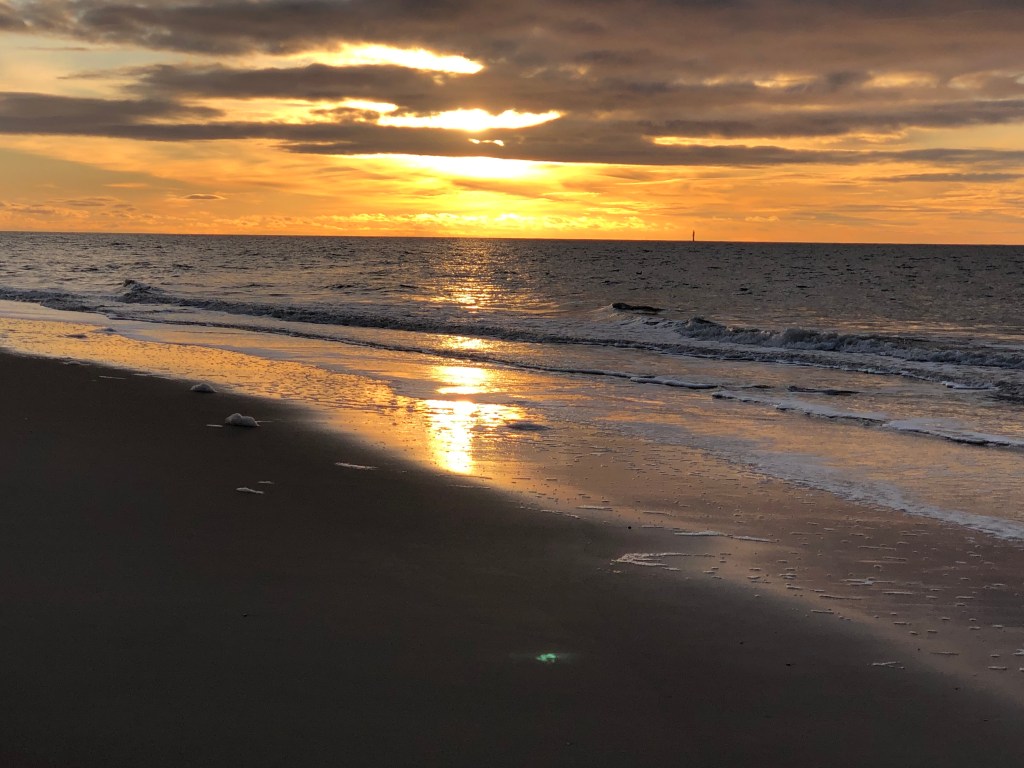 Hoppla. Nochmal ein paar Stunden zurück bitte. Hätte ich doch fast meinen ersten fast kompletten Sonnenuntergang vergessen! Leider wie gesagt nicht komplett. Eine Anwendung um 16:00 Uhr machte uns einen Strich durch das Vorhaben. Trotzdem. Sonnenuntergänge kann man nie genug sehen und festhalten. So stand fast jeder Strandläufer mit dem Handy im Anschlag …