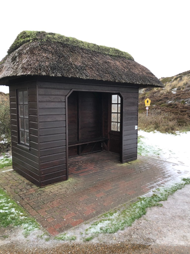 Da als fällt mir ein…mitten auf dem Dünenweg steht eine Bushaltestelle … sicher auch im Winterschlaf 😅