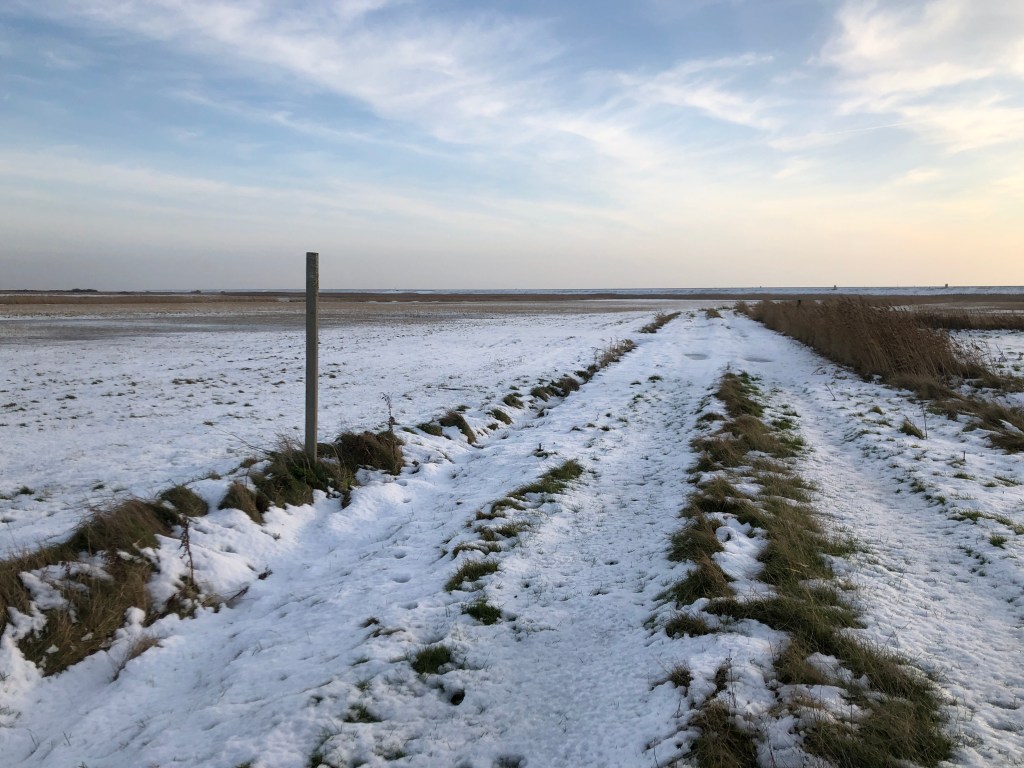 Vielleicht haltet ihr mich jetzt für Verrückt, aber diesen Weg balanciere ich zwischen gefrorenen Pfützen, die nur darauf lauern, dass man hinein- und durchtritt und gefrorenen holprigen Erd-und Grasnarben hindurch immer weiter in Richtung Hindenburgdamm.