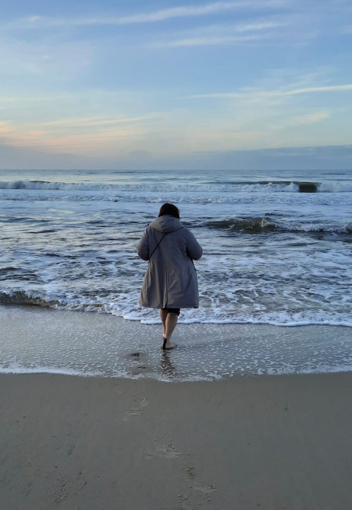 … auch die Kälte des eisigen Wassers, die Wellen die meine Beine umspülen und die Füße die im feinen Sand einsinken…Kalt, saukalt. Aber toll!