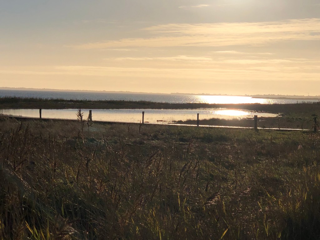 Ich laufe nach Norden, die Sonne jetzt im Rücken in Richtung Kampen. Sie zaubert endlich ein wenig Farbe in die karge, winterliche Landschaft.