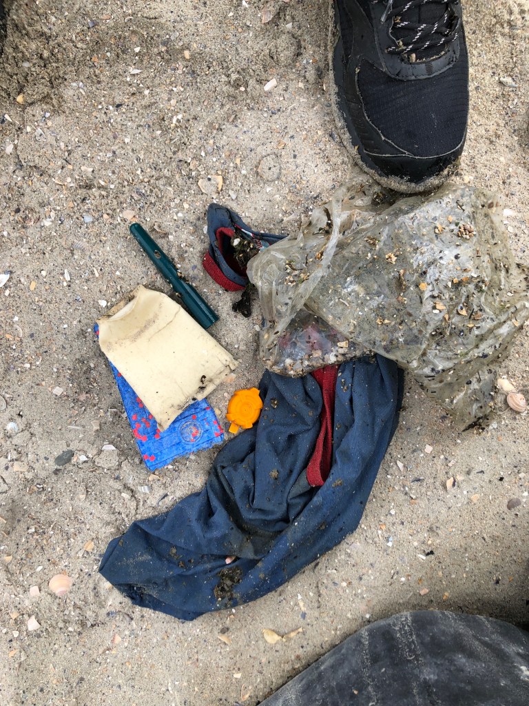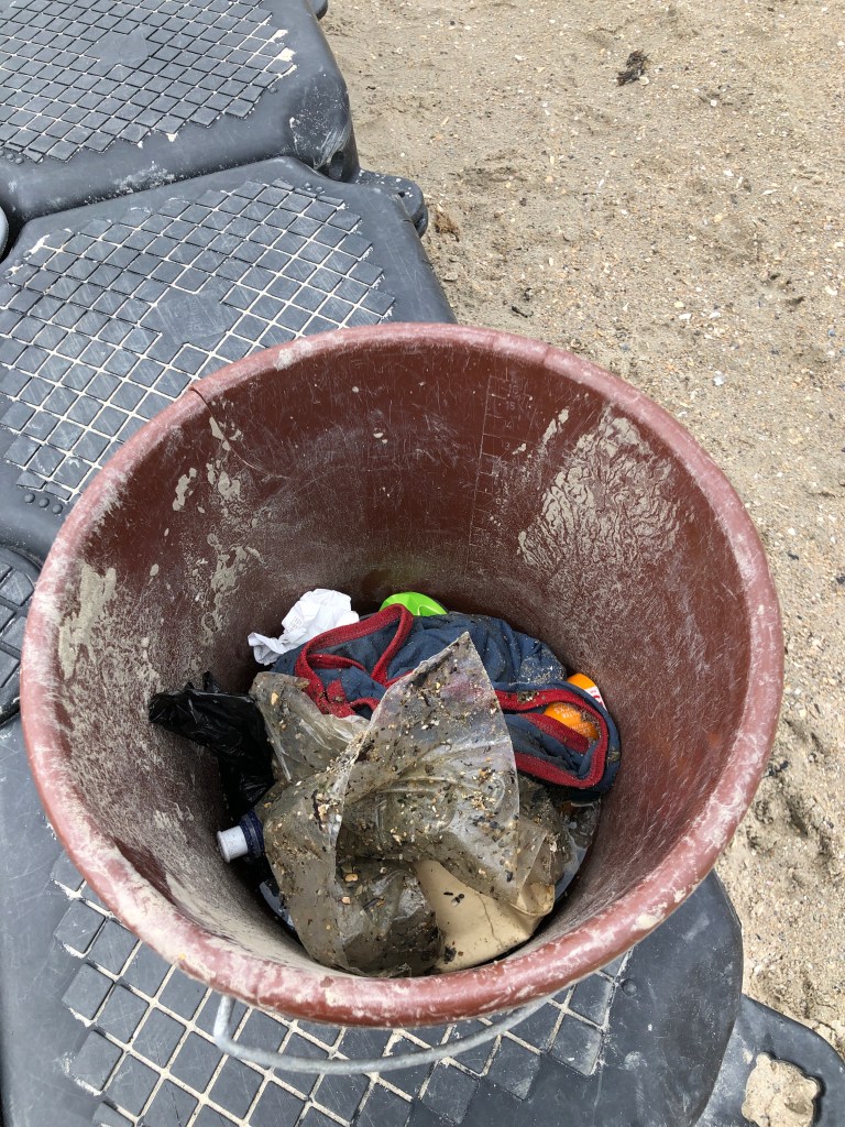 Ein Strandlauf fördert innerhalb eines Meters! diesen Müll zu Tage, den ich mitnehme und im bereitgestellten Eimer entsorge.