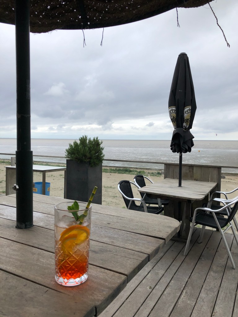 Der nächste Besuch gilt dem hiesigen Strand, der bei starkem Wind nahezu menschenleer ist. Allein zwei Kitesurfer toben auf den Wellen herum. Ich schaue Ihnen von der Terrasse der Strandbar aus bei einem Aperol zu. Der Kellner lacht nur, als ich mich entschuldigte, dass er wegen mir allein hinaus musste, im kurzen Shirt.