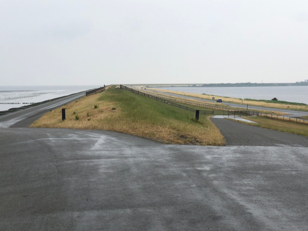Die Wucht des Meeres wird mir wieder mal bewusst, als ich in die Nähe des Wattenmeeres komme, meinen Rucksack sprichwörtlich im Regen stehen lasse, und die Fotos zu machen – ja, bei strömendem Regen und gefühlt Windstärke 7. Nicht zu sprechen von dem glitschigen Untergrund..