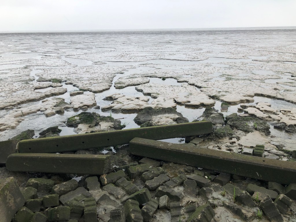 Mitten durch die Speisekarte der Seevögel 🦀 die hier offensichtlich bei Ebbe einen reichlich gedeckten Tisch vorfinden.