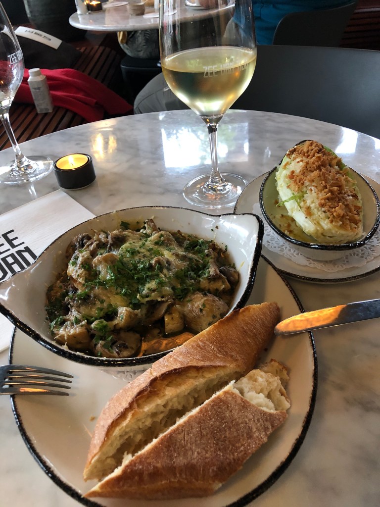 Und das ist das, was ich so liebe: die Belohnung für mich selbst! Eine Vorspeise mit kleinem Salat und ein Wein ( ok, inzwischen zwei) reicht, um diesem Tag ein sensationelles Ende zu geben. Sensationell ist das Essen, was man hier niemals vermuten würde. Danke schön! So lecker. Und schreiben kann ich auch, den Tag Revue passieren lassen… Eindrücke festhalten und wissen: ich gehe weiter. So wie auf dem Camino. Jeder Tag hat seine Besonderheiten und seine schönen Erlebnisse. Man muss sie nur zulassen und sehen. Und sich manchmal auch selbst belohnen….