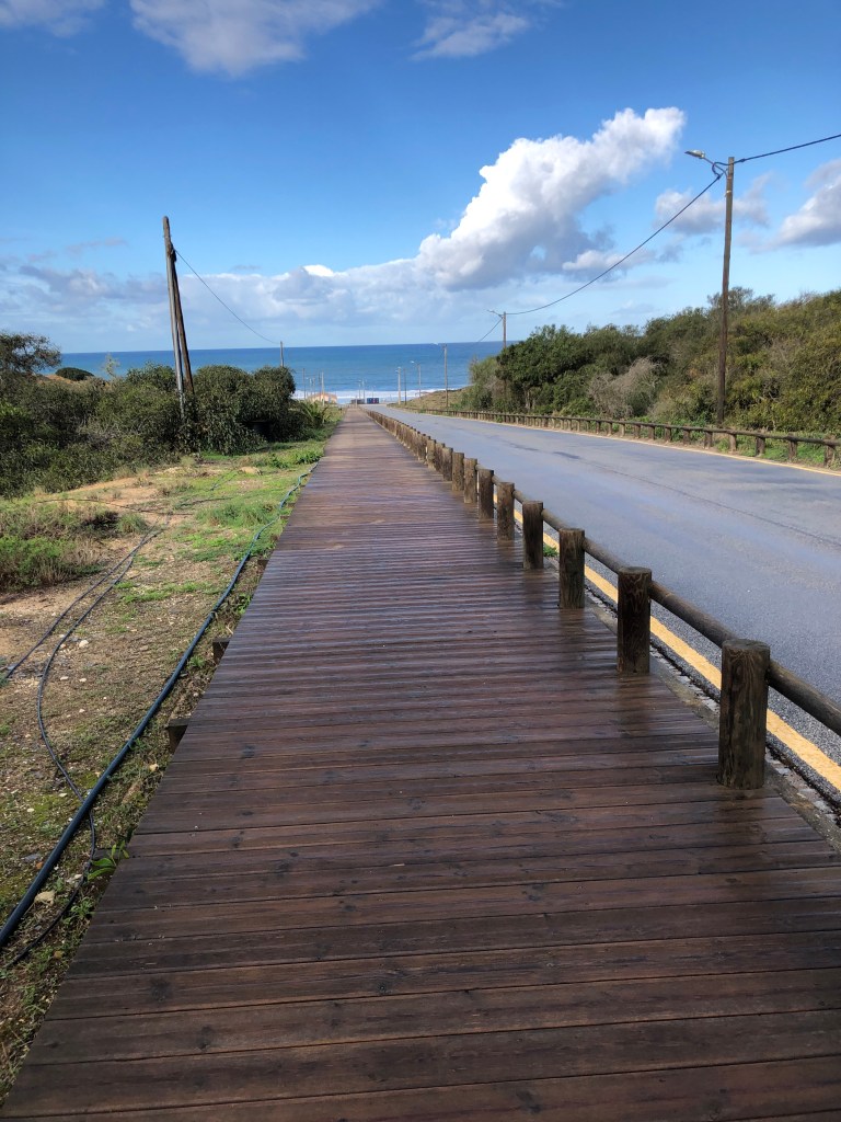 Der Weg führt mich an den Strand und weiter ca. 2 km auf breitem Weg die Küste entlang. Mir schwant schon. Eingewöhnung für die Muskeln auf die Sandetappe 😎