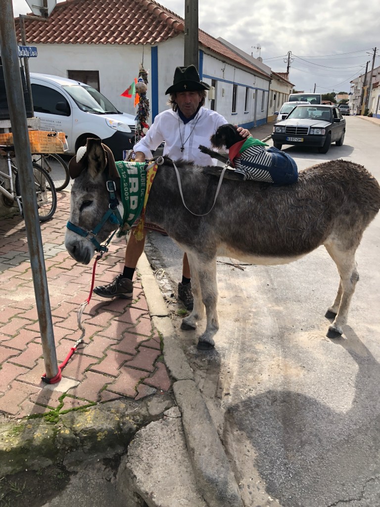 Enrique mit seinem Esel und Ana, die ihn so oft wie möglich begleitet. Enrique, der bekannteste Camino- Peregrino. Und, mich haut es fast um, wir auch noch irgendwie verbunden mit unserem Arbeitgeber sind, Enrique allerdings seit 8 Jahren in sogenannter „Freiheit“ lebt.