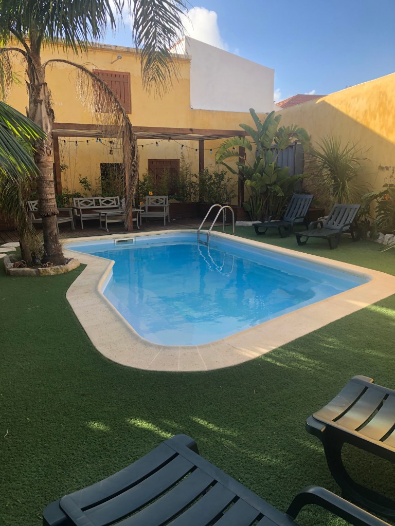 … noch mal von vorn. Nach einer ruhigen Nacht nehmen Markus und ich ein kleines Frühstück in der Bar gegenüber ein. Die Kaffeemaschine ist leider defekt. Also gibt es einen Orangensaft. Das Casa Mestre war eine sehr schöne und doch preiswerte Unterkunft, sogar mit Pool.