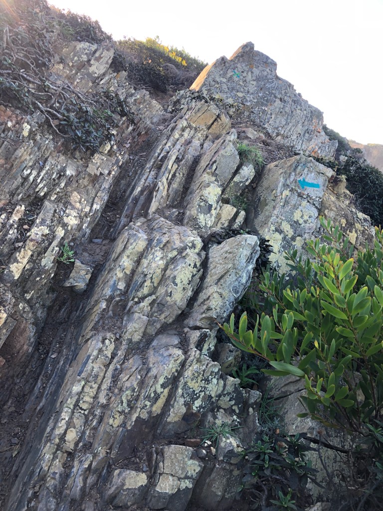 Wanderwege mutieren durch die Regenfälle zu kleinen Bachläufen, Kletterpartien werden schnell zu Rutschpartien. Kurzum. Hohe Aufmerksamkeit und Trittsicherheit sind heute gefordert. Hat irgend jemand daran gedacht, dass dabei ein 6 kg schwerer Rucksack hinderlich ist?