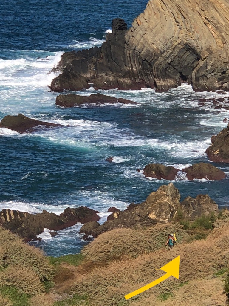 In den nächsten zwei Stunden geht es Rauf und runter. Richtig extrem, ich habe zeitweise richtig „Pudding“ in den Beinen, kann ich kaum meinen körperlichen Schwerpunkt austarieren mit diesem Ungetüm auf dem Rücken. Ein Fehltritt und … ich möchte garnicht darüber nachdenken.