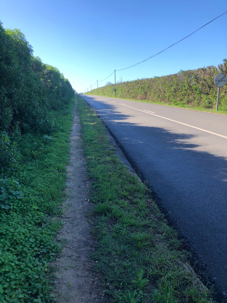 Was ihr hier seht ist mein heutiges Ziel. Was ihr nicht seht sind die 8 km, die ich bis dorthin noch bewältigen muss. Denn. Dazwischen Liegt ein Fluss, dessen Brücke sich in 4 km landeinwärts befindet. Herzlichen Glückwunsch oder besser „ Ach, du liebe Sch…“