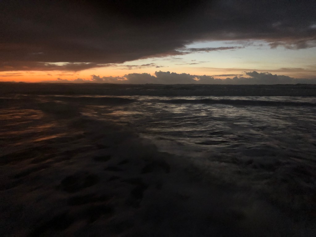 Ich bin megafrüh wach. 5 Uhr. Um 07:00 h macht die Bar fürs Frühstück auf. Ok. Ich lümmel noch etwas im Bett rum, ein Blick aus dem Fenster – es ist trocken ( es hat heute Nacht wieder geschüttet) und ich packe langsam den Rucksack.