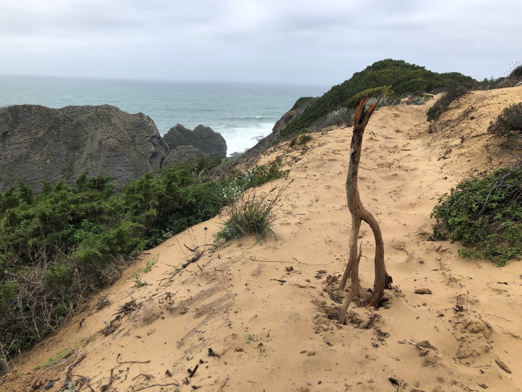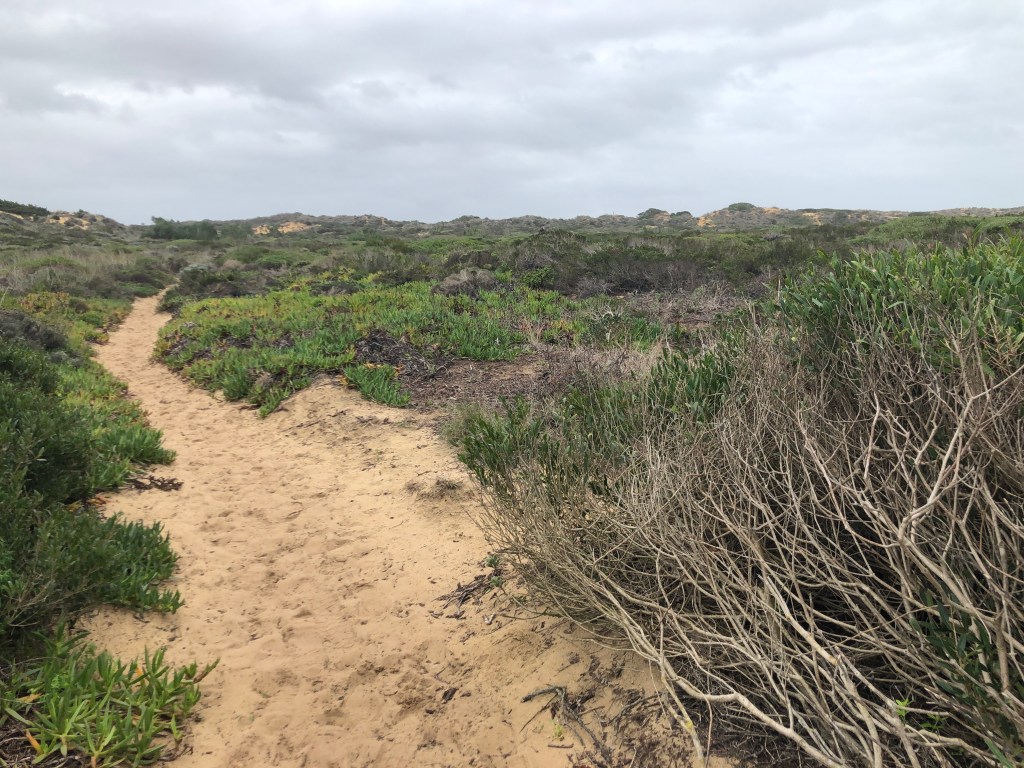 … von der Küste weg, einen immer noch sehr sandigen Pfad durch Kiefernwälder in Richtung Arrifana.
