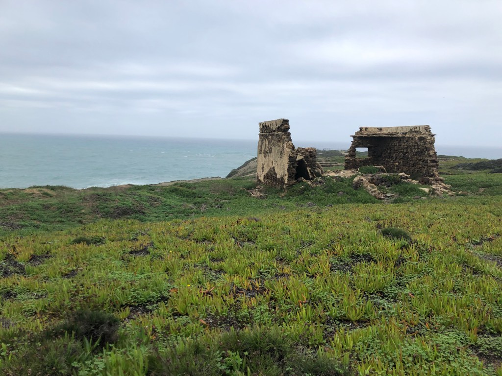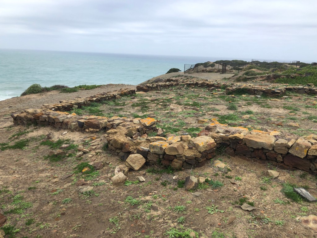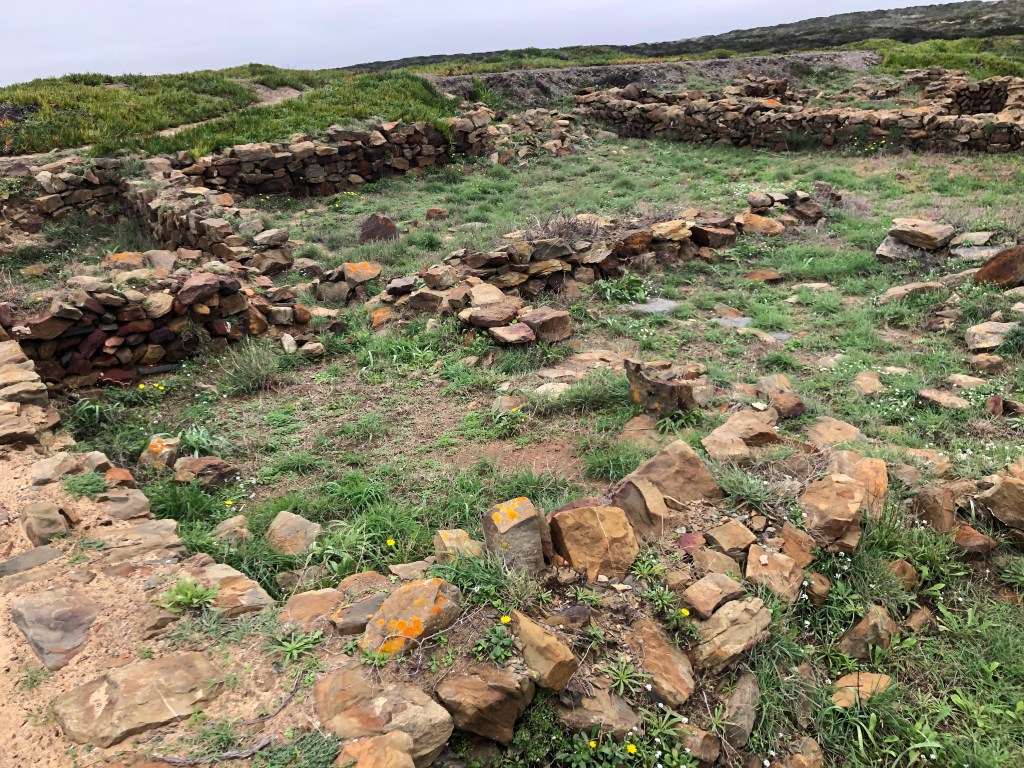 Ich komme an einer Ruine vorbei und bei näherem Hinschauen muss hier wohl mal eine Besiedlung statt gefunden haben. Wahrscheinlich aufgegeben weil sich der Ozean das Land wieder genommen hat, so dicht wie die Ruinen hier am Klippenrand zu finden sind.