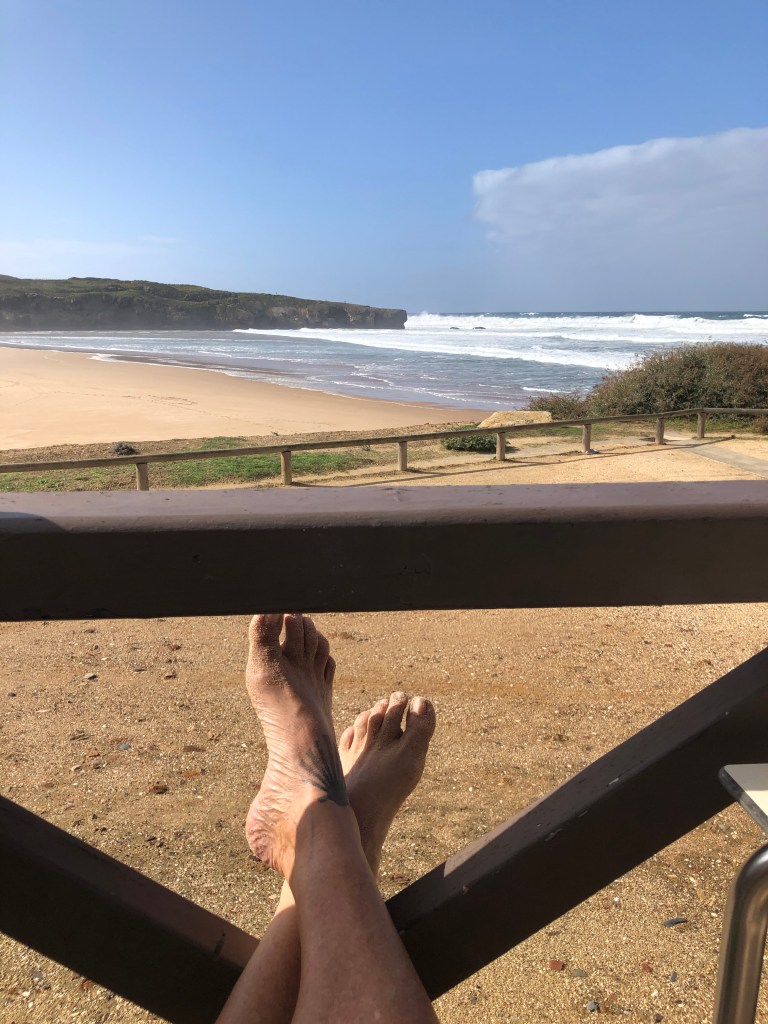 Ich bleibe solange die Sonne mich lässt und genieße den kühlen Sand unter meinen Füßen um eine Pause einzulegen.