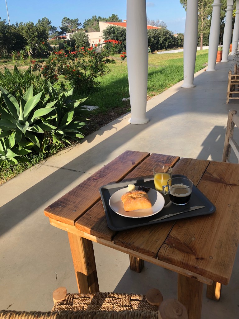 Aber ich soll mich ja um mich kümmern! Also packe ich heute morgen meinen Rucksack mal so richtig ordentlich. Die Wäsche ist dank des Dauerregens gestern Abend nicht trocken. Mir bleiben 1 Shirt, eine klamme Hose, ein paar Socken, das Bikini-Oberteil 🫣 die Regenjacke. Sollte klappen. immerhin verspricht es heute in Carrapateira besser zu sein.