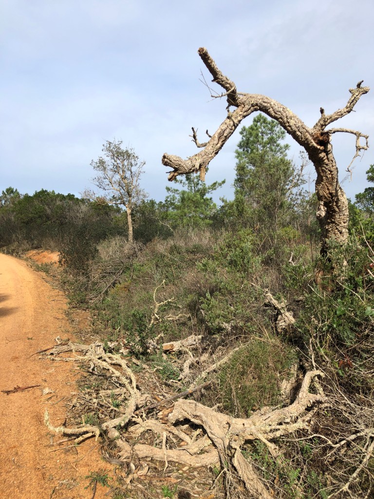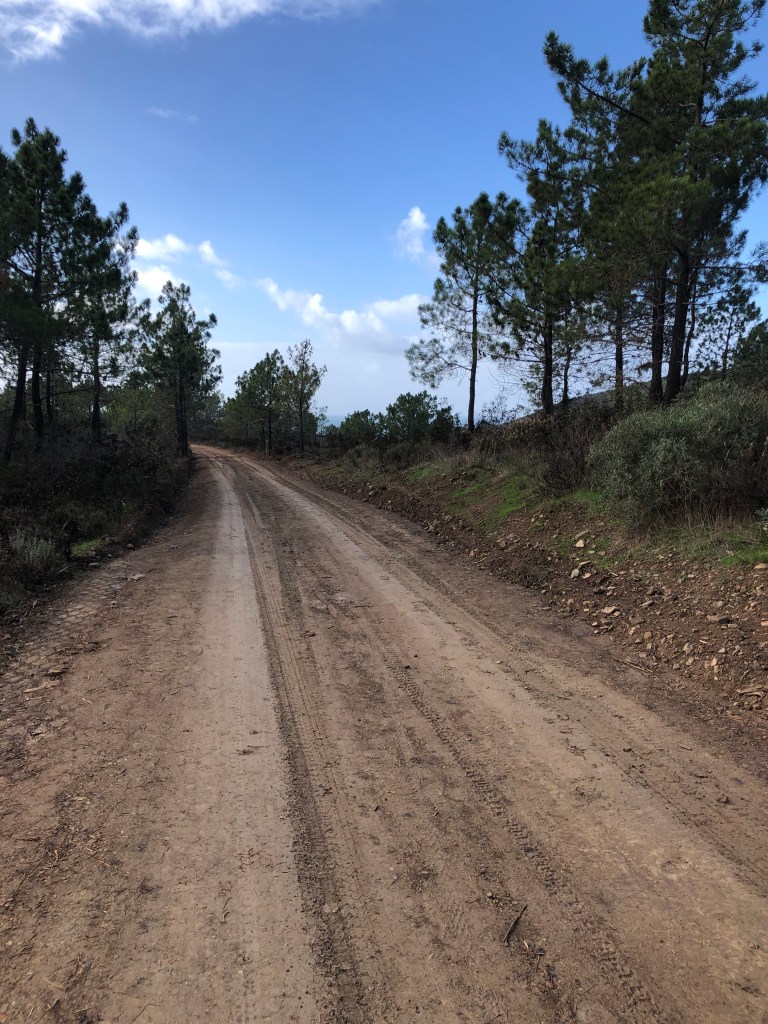 Dann folgen km der Einsamkeit. Schritt für Schritt vorwärts. Kaum Abwechslung zwischen Pinienwäldern und Schotterstraßen. Mal rauf, mal runter. Geduld und Ausdauer helfen.