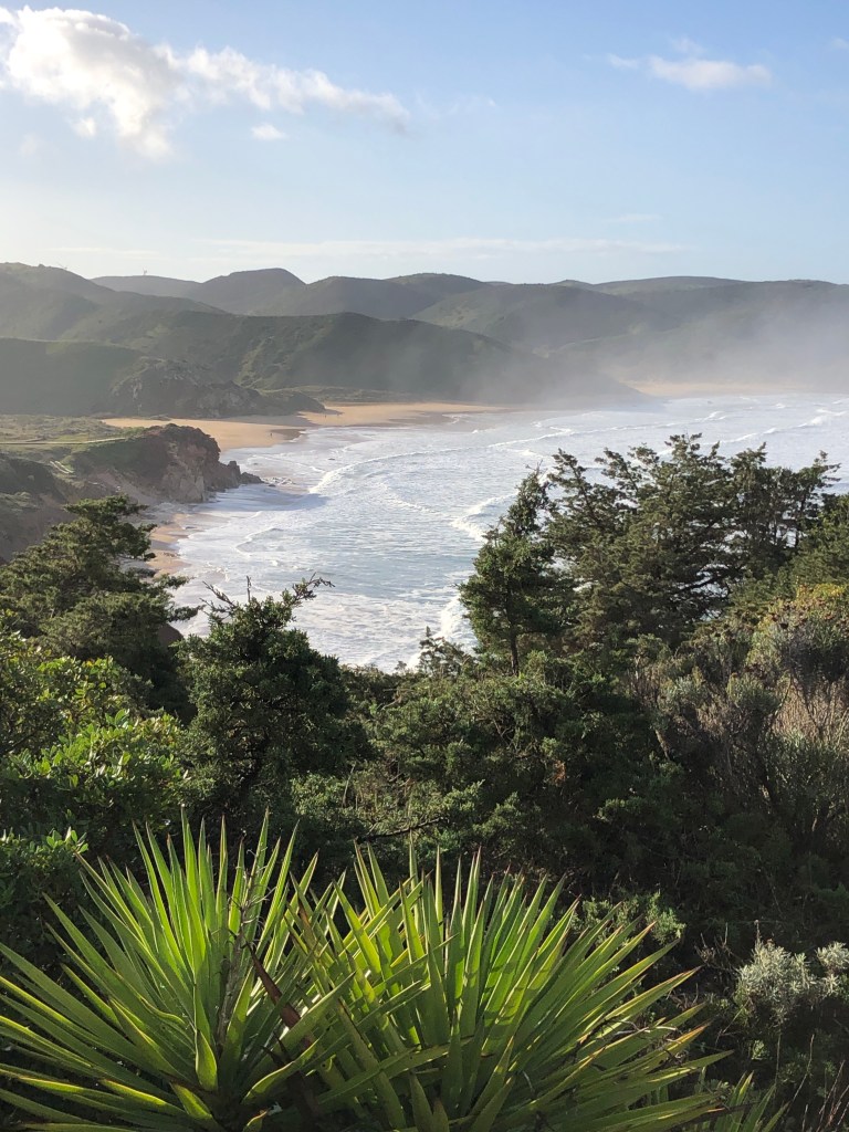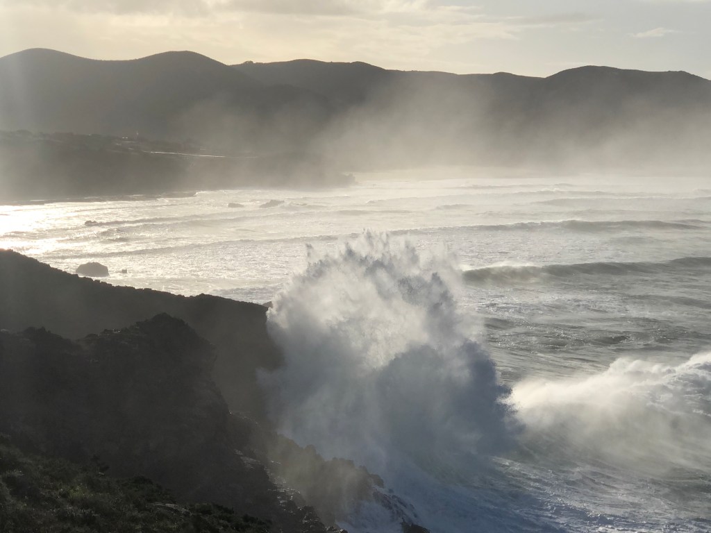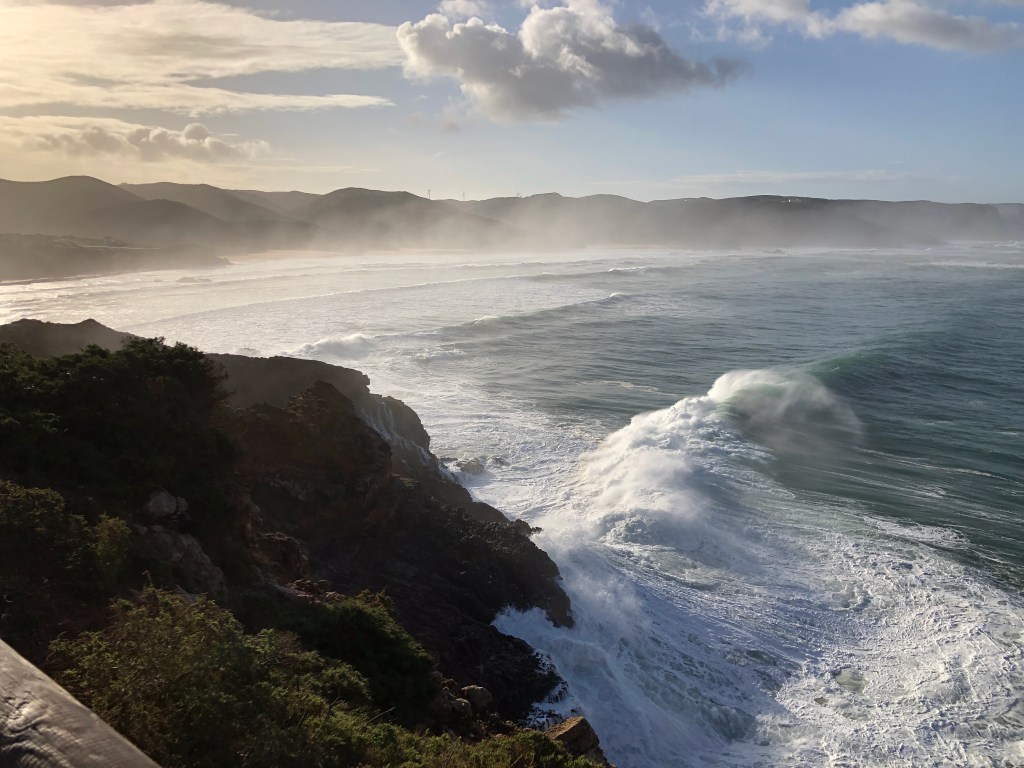 Heute folgt Bucht an Bucht. Einsame Strände, normal ein Surferparadies hier. Aufgrund der Wetterverhältnisse und der aufgewühlten Brandung ist Surfen aber lebensgefährlich.