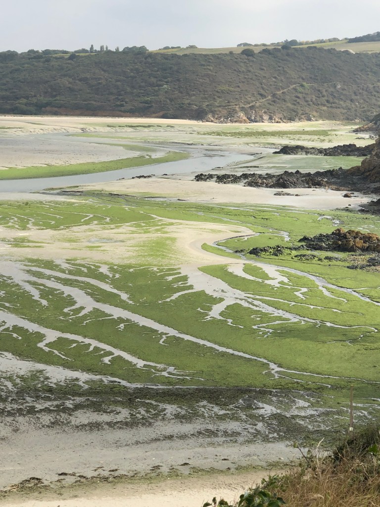 Und wenn ich euch heute ein Bild schicke, aufgenommen von der Altstadtmauer Saint Malo (da hatte ich bereits ca 46 km hinter mir) auf dem man in der Ferne das Cap Frehel sieht, an dem ich Tag 7 war (drei Tage später) da wird einem bewusst, welche Entfernungen man zurück legen kann- zu Fuß. Ein bisschen Stolz kommt da schon auf 🙈.