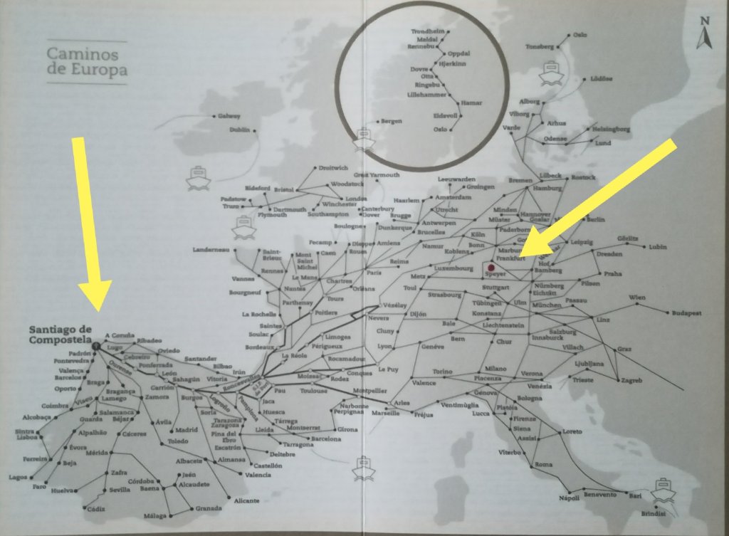 Nun, genau hier führt ein Camino nicht vorbei, aber im nahe gelegenen Worms. OK, nahe per Auto, zu Fuss schon eine Herausforderung.